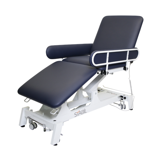 Stabil Klinical 2-Section Couch with Electric Backrest - White Frame and Navy Upholstery