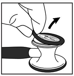 The new diaphragm can then be fitted around the chest piece by pushing it on at the sides and rubbing your finger along the rim of the diaphragm to make sure it is securely attached creating an acoustic seal as demonstrated below.