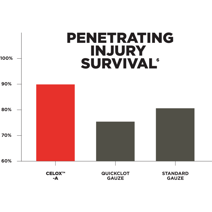 Celox-A has excellent results in independent testing outperforming Combat Gauze. Celox-A uses the proven Celox granules for maximum performance and reassurance of a safe, effective product.