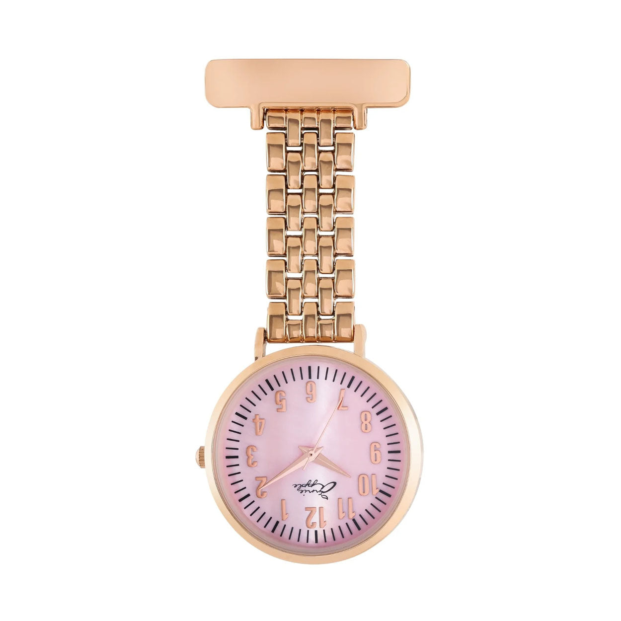 Annie Apple Nurses Fob Watch - Aurora - Pink Mother of Pearl/Rose Gold - Link - 35mm