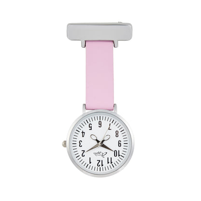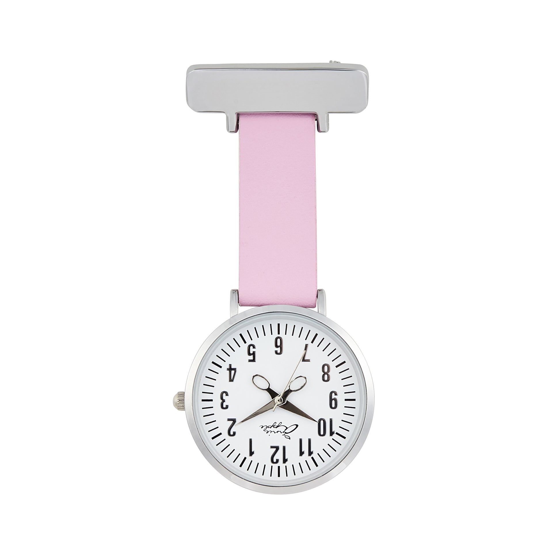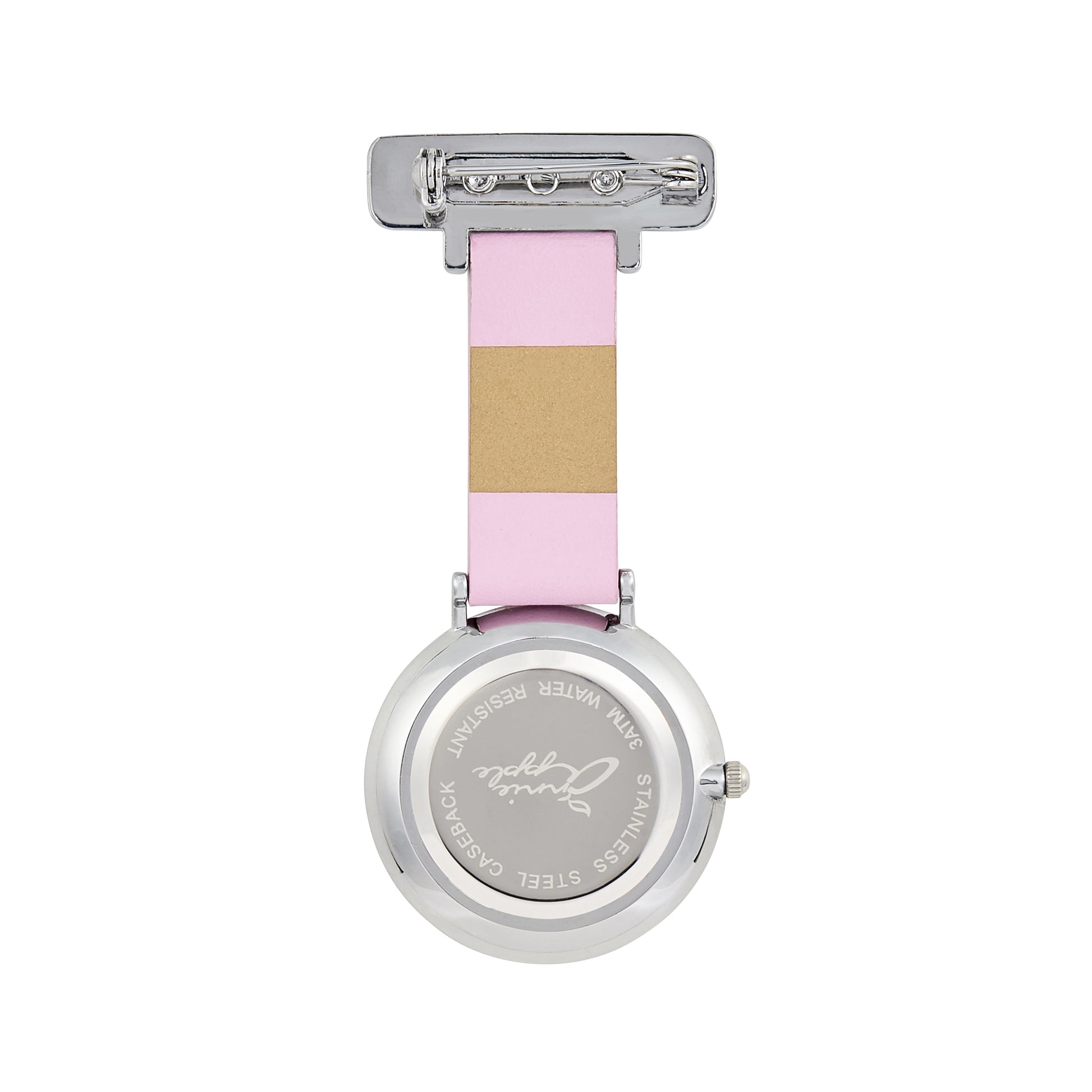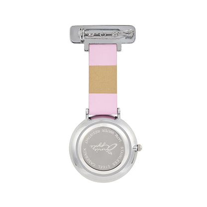 Annie Apple Nurses Fob Watch - Aurora - White/Silver/Pink - Leather - 35mm