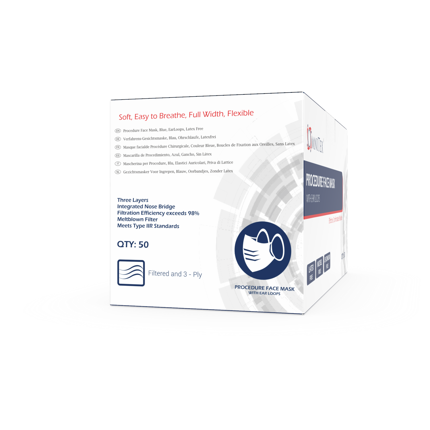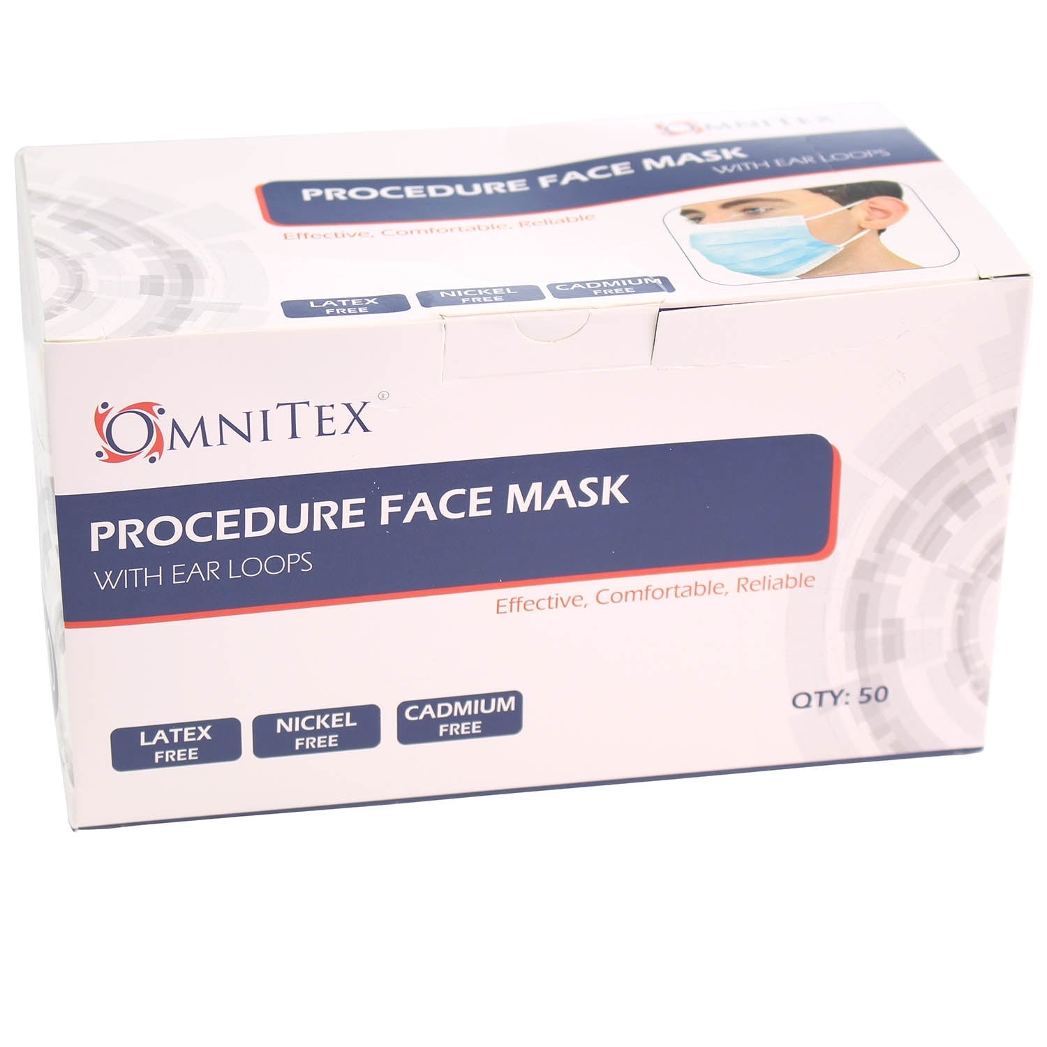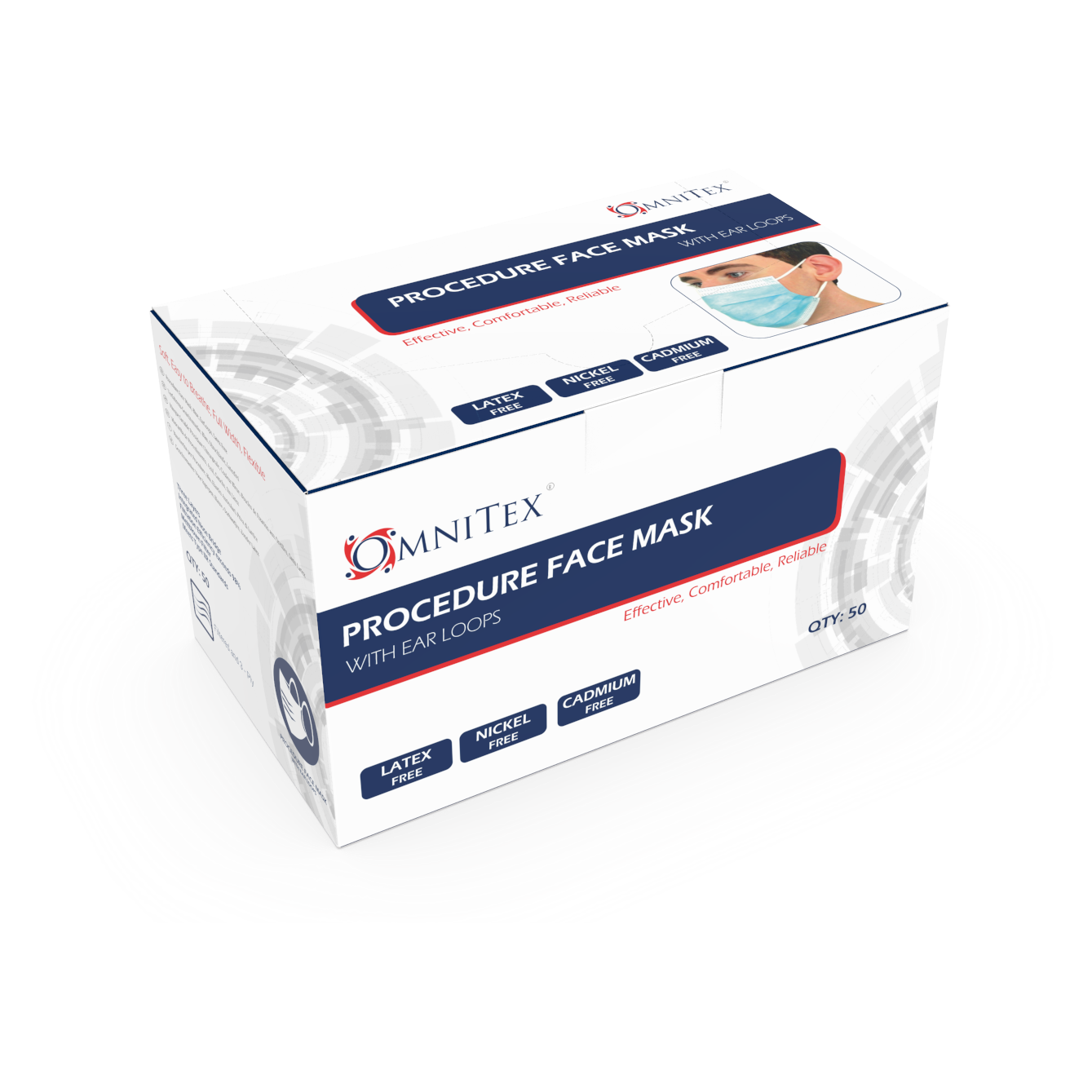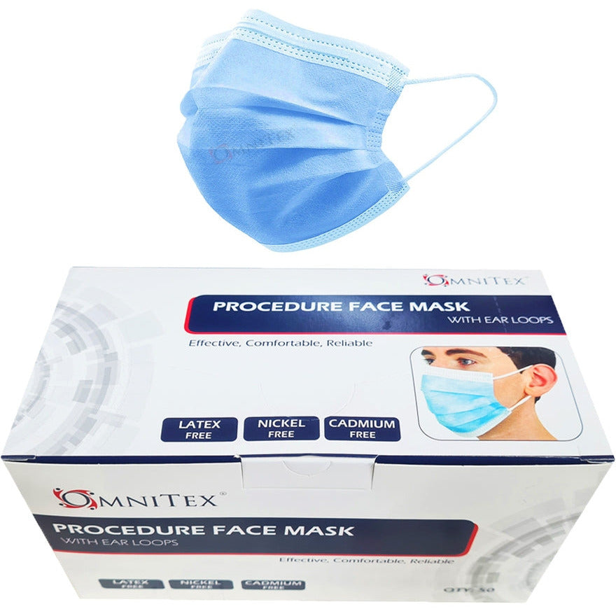 Omnitex premium IIR face masks with ear loops, with meltblown filter - minimum 98% Bacterial filtration and fluid resistant at 120mmhg. EN14683:2019 Compliant.