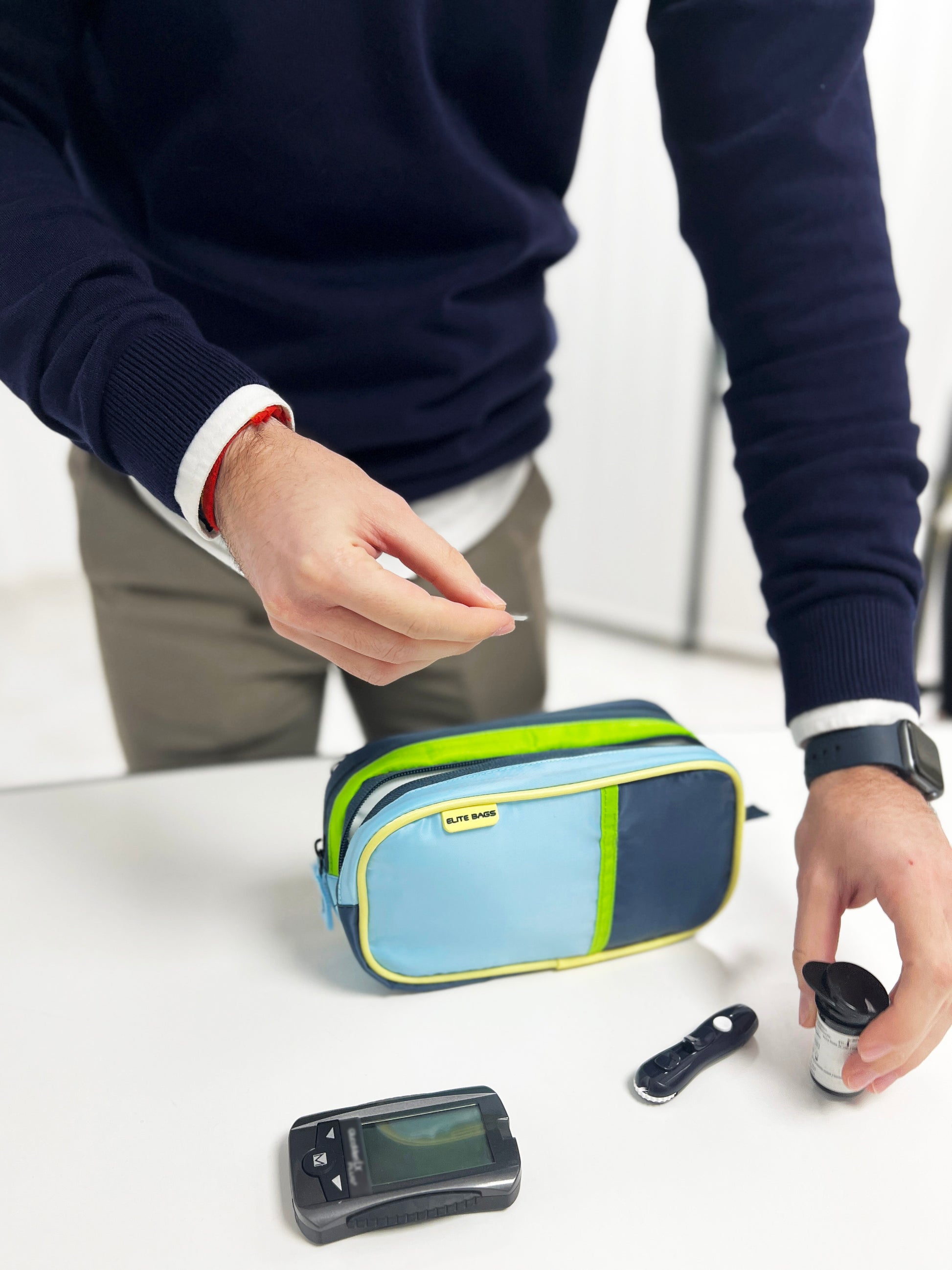 This isothermal bag has been specially designed to carry all the injection pens and the essential items for diabetes treatment. Its design is split into two pockets: the front pocket is designed to hold your meter and testing equipment, test strips and extra needles. The back pocket will hold both the included pouch of cold gel along with your injection pens. It has an isothermal lining to make sure that it maintain constant temperature.