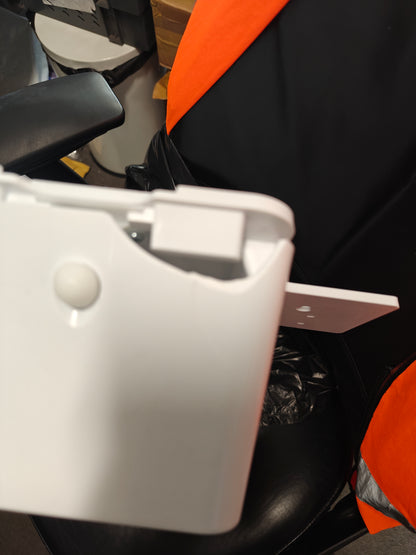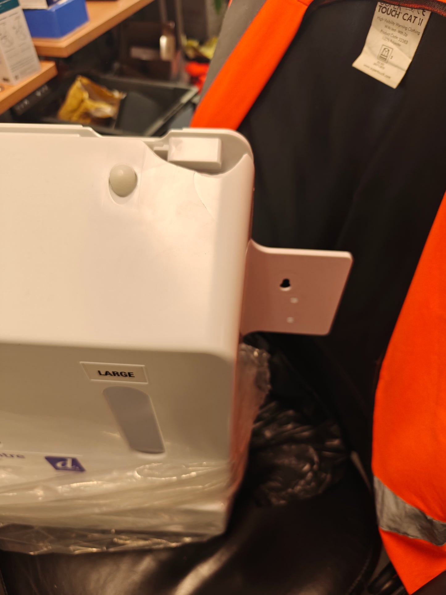 The Danicentre is a wall-mounted glove and apron dispenser. It has three compartments for different sizes of gloves or a mix of gloves, overshoes, masks, etc. Large oval apertures allow easy access to each compartment. The lower horizontal slot is designed to take rolls of aprons. The Danicentre standard incorporates an integral mounting plate for hand disinfection lotion. Contents are not included. UK Patent GB 2355178