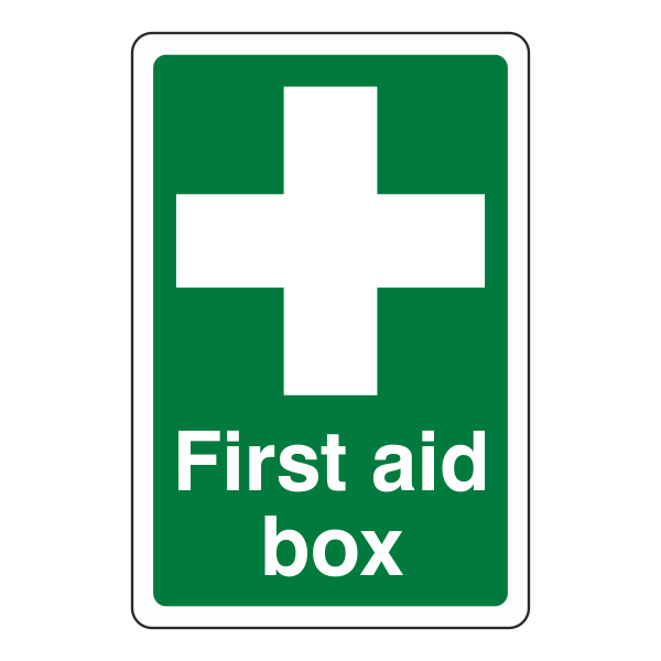 - Display in prominent locations to highlight the location of first aid equipment and trained first aiders