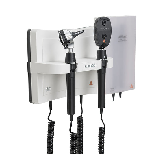 HEINE EN200 LED Wall Diagnostic Station - With BETA200 LED F.O Otoscope & BETA200 LED Ophthalmoscope