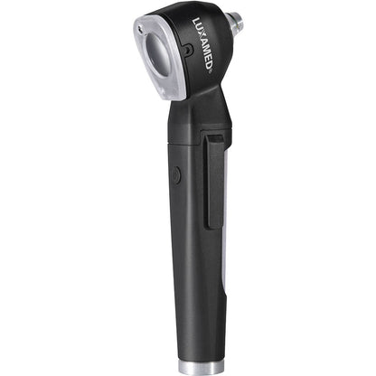 "We happened to stumble across this otoscope at a large medical fair. We were immediately overwhelmed with the massive specification of the otoscope at such a reasonable price. We had never before heard of direct LED illumination on an otoscope before, this was a first for us. The otoscope uses a very neat and compact LED ring where a conventional otoscope would have fibre optic strands. The end result is an amazing amount of pure light that can be tailored to suit any task, it also means that the head is completely sealed, very compact, and completely unobstructed. The Luxamed features a highly advanced digital on/off switch with built in rheostat function, automatic off and memory so that the previously selected power is predefined when turning on again. We initially thought The unit was completely sealed, but then found out about the innovative snap on fixing. This feels incredibly secure and also means that in the future it can be added onto if Luxamed decide to enter into the ophthalmoscope/dermatoscope market. The quality of the finish on the otoscope wouldn’t look out of place on a £100 + otoscope set. The aluminium is precisely engineered and the whole package exudes quality German engineering. Better still the 2.5v units use just two AAA batteries which will give hours of continuous light at a digitally managed constant output. We were honestly blown away by the specification of this unit. For the money there is nothing else that even comes close!