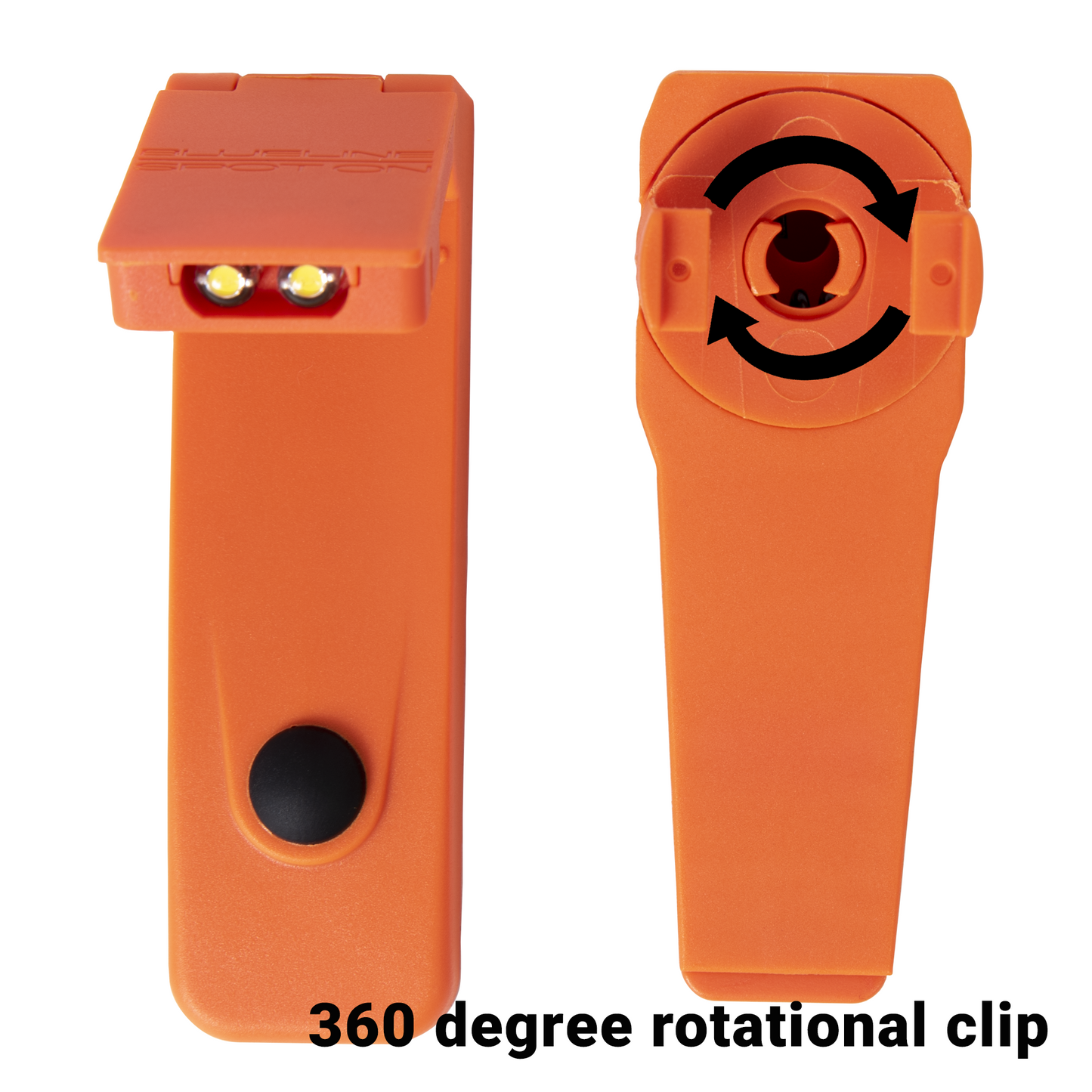 The Clip-on Torch is quick and simple to operate, with the on/off push button located at the front of the light unit. This will activate the two ultra bright LED’s within the pivoting head. The 170 degree pivoting head allows you to position the light just where you need it.