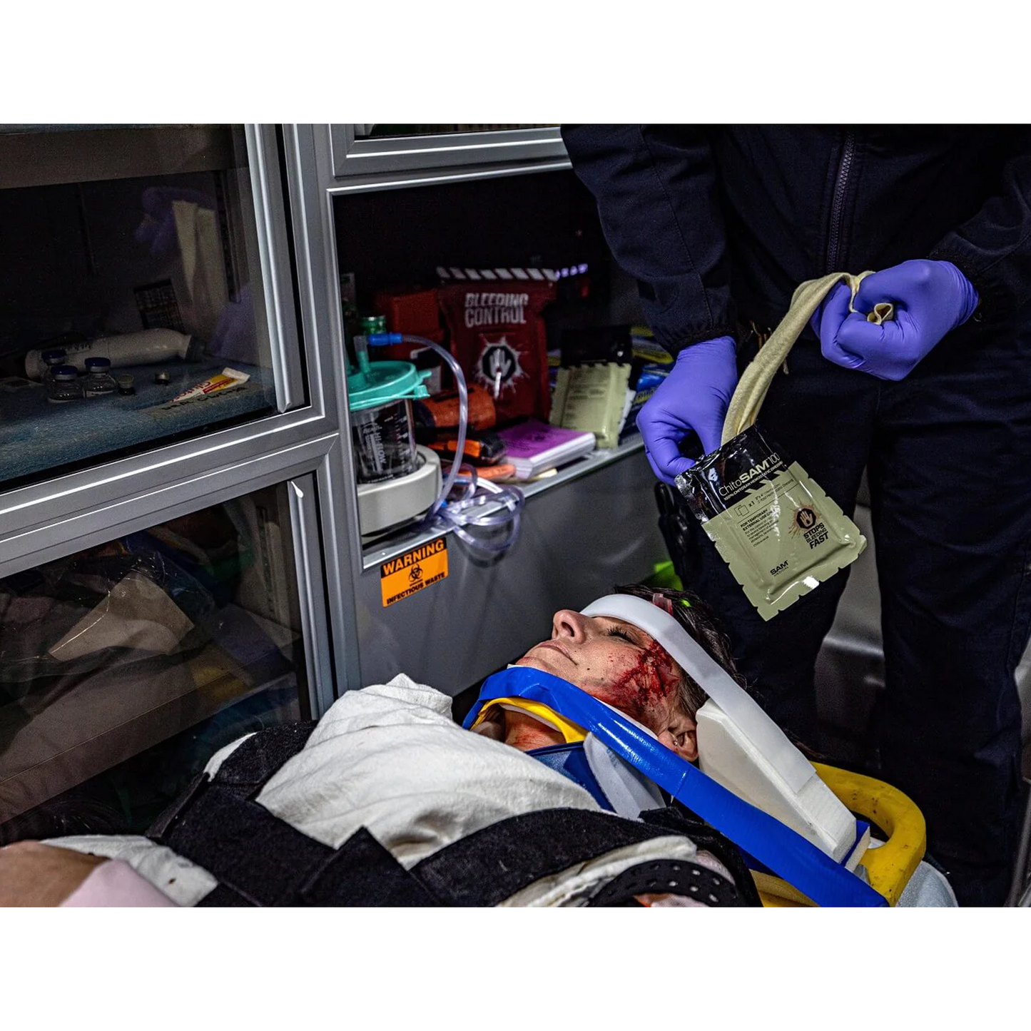 The ChitoSAM™ is idea for the control of moderate to severe bleeding and management of external abrasions, lacerations.
