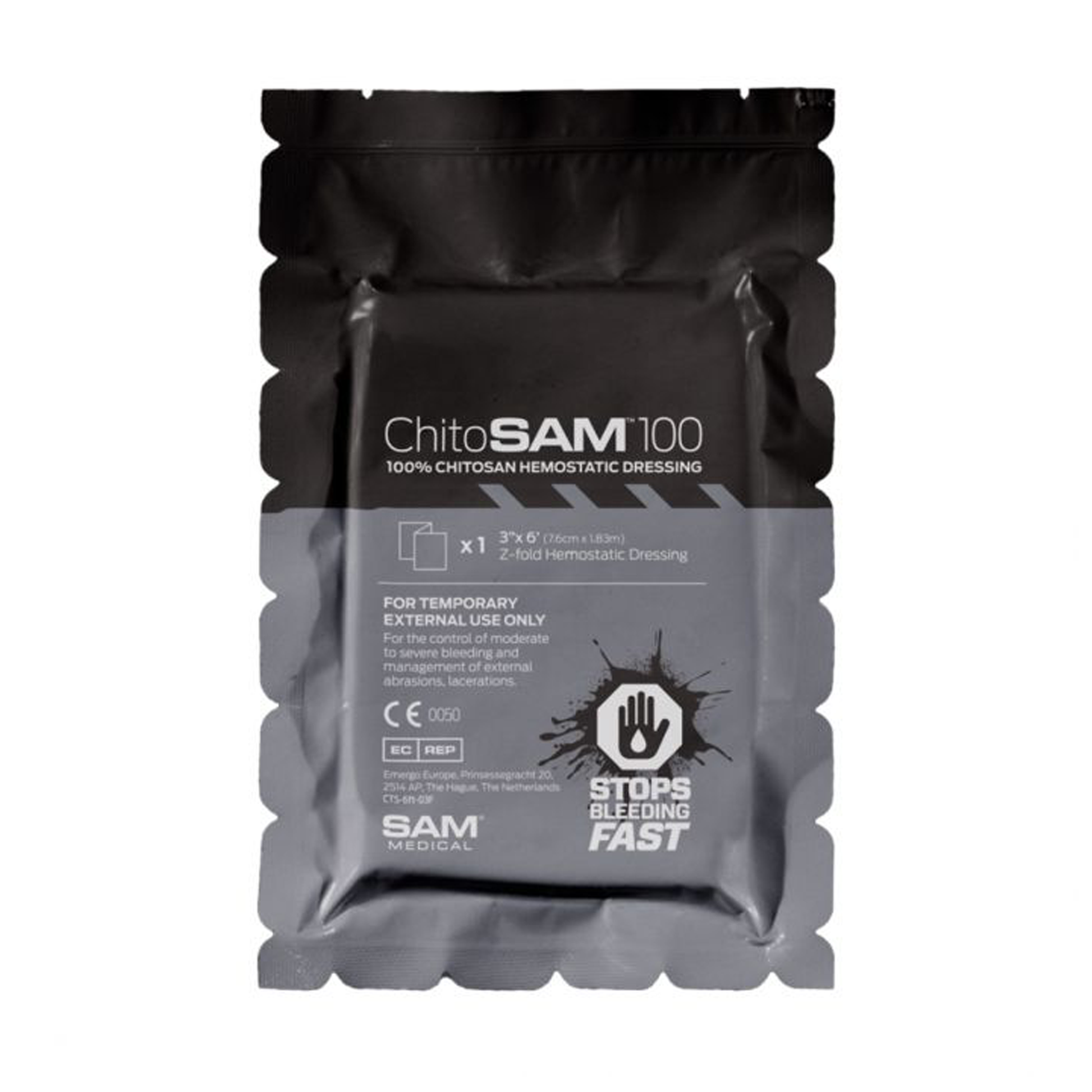 PERFORMANCE GAUZE - ChitoSAM™ has a haemostatic performance equivalent to products impregnated or coated with chitosan haemostatic agents. The z fold dressing is 3in x4ft (7.6cm x 1.22m) and is ideal to be placed on wounds in addition to trauma gauzes.