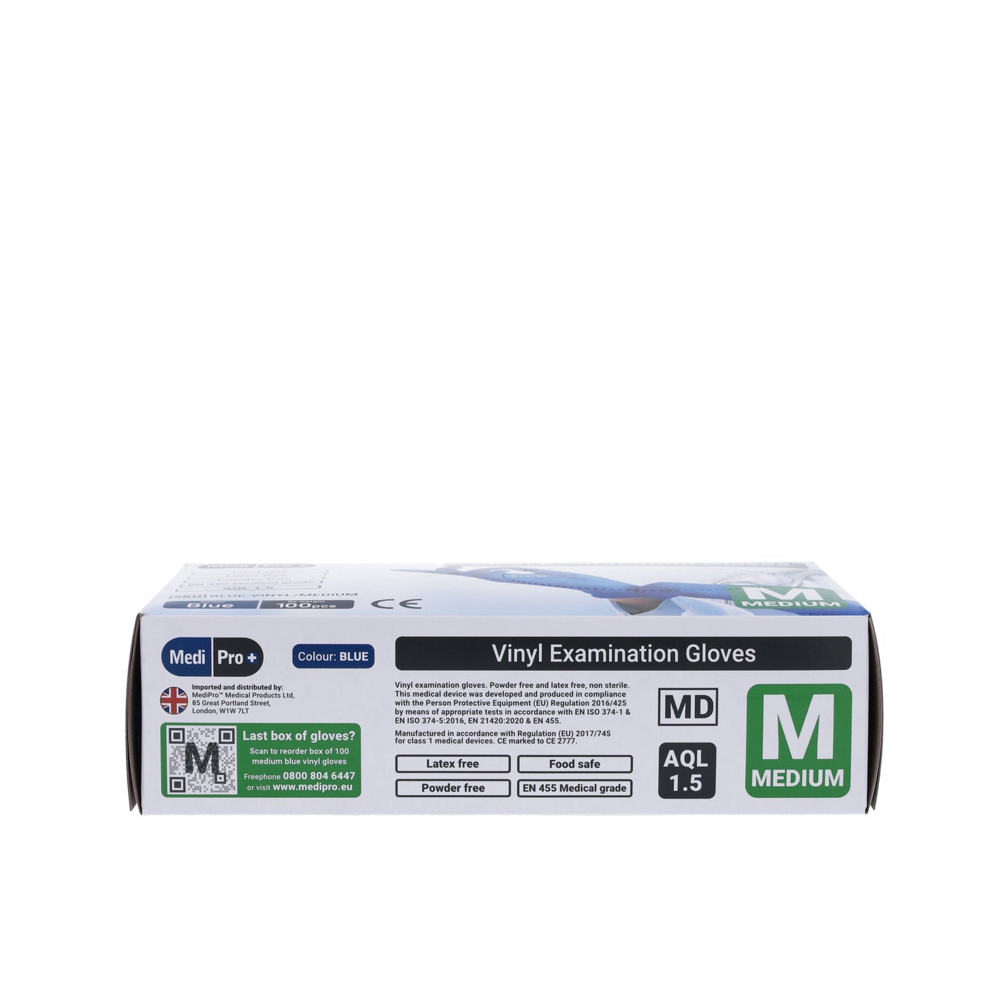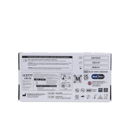Blue Vinyl Exam Gloves - Cat III PPE Medium x 100