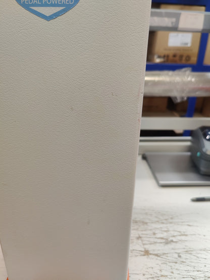 This sackholder is foot pedal operated. The user simply presses the foot pedal to lift the lid so that they can deposit their waste without any skin contact. An optional hands free frame reduces the need to worry about users trying to operate the bin by hand.