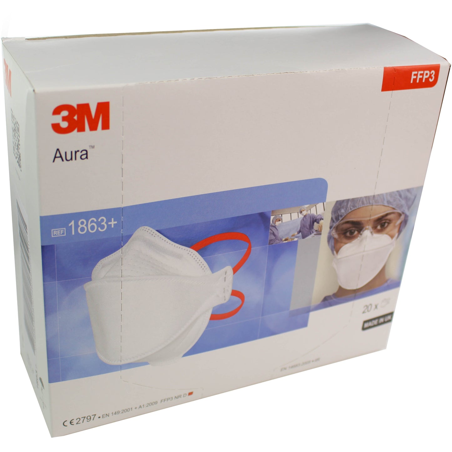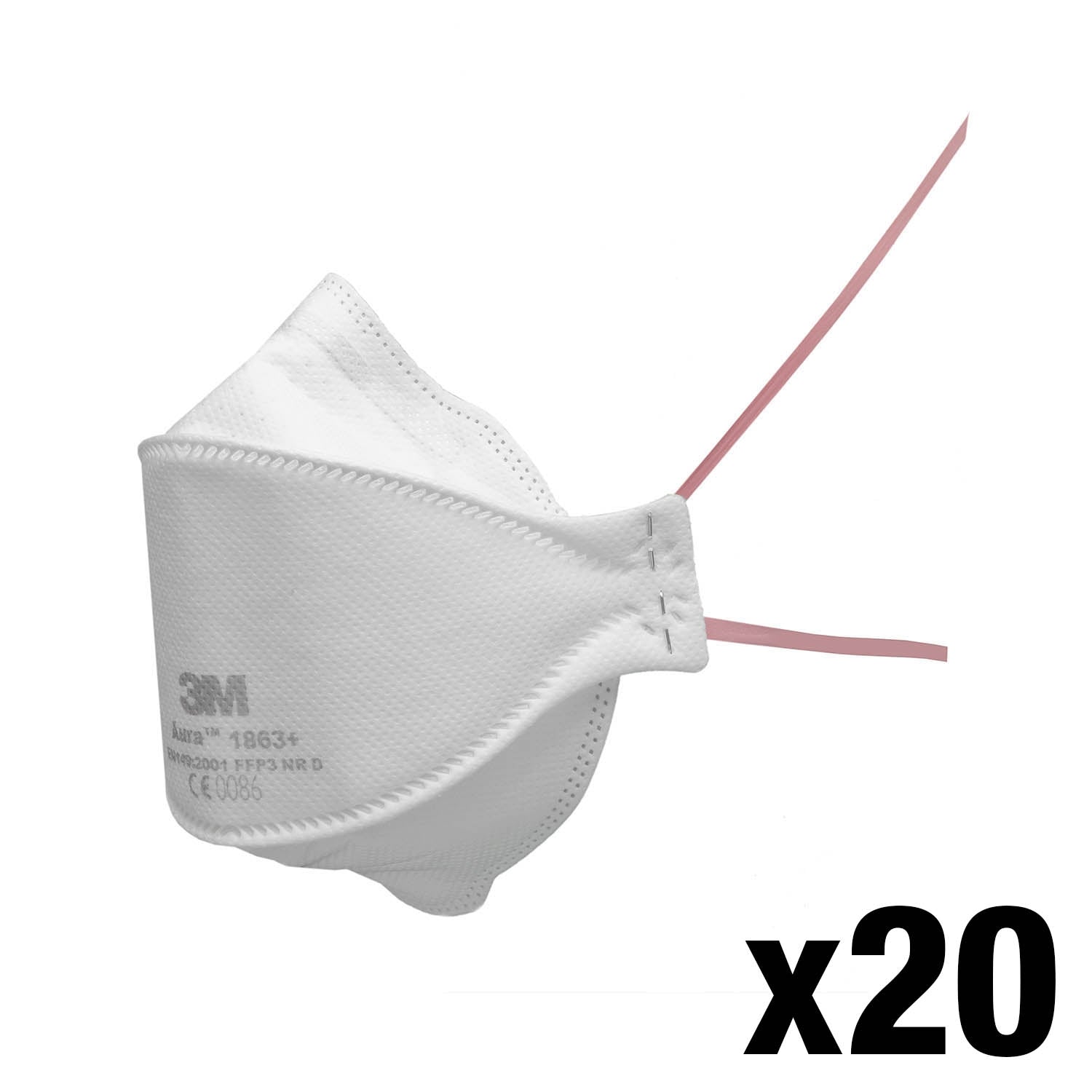 3M™ Aura™ Particulate Healthcare Respirator 1863+ is our foldable, 3-panel respirator with a sculpted nose panel that conforms to a broad range of face shapes. This FFP3 disposable respirator features a lightweight, balanced design.