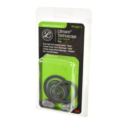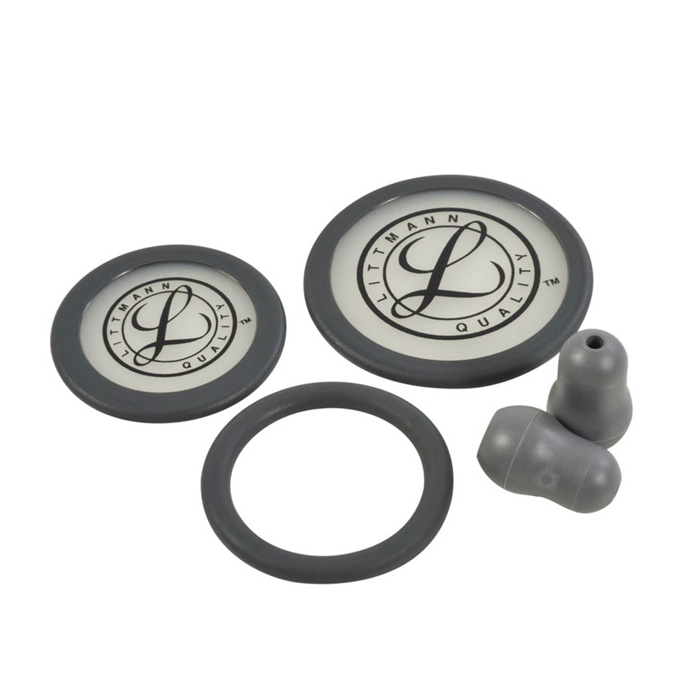 3M™ Littmann® Stethoscope Spare Parts Kit for the Classic III™ and Cardiology IV™ stethoscopes contain a Grey single piece tunable diaphragm for both the adult and pediatric sides of the chestpiece, in addition to two small (1/2 inch), Grey Snap Tight Soft-Sealing Eartips.