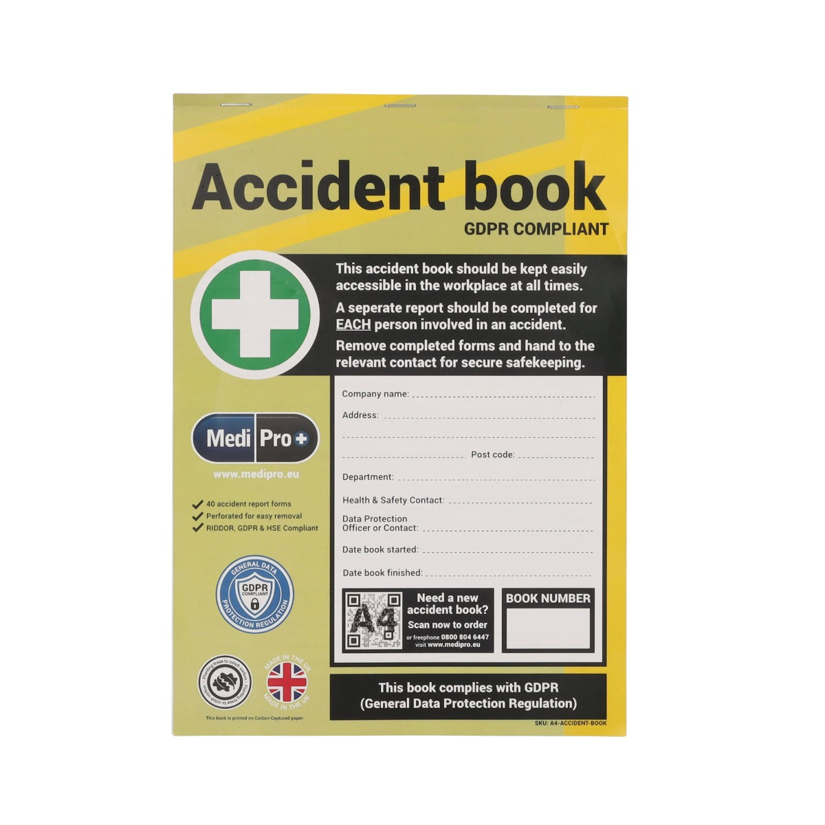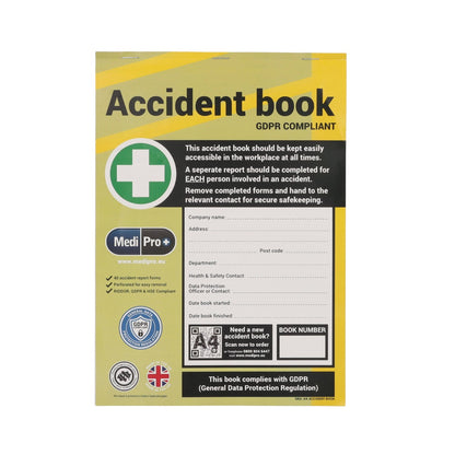 An accident book is a legal requirement if you have 10 or more employees, our MediPro accident book is fully compliant with GDPR requirements, RIDDOR and HSE guidelines