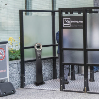 A free-standing ashtray featuring an innovative circular design and lockable base. Encourages the tidy disposal of cigarettes to reduce unsightly littering. Made from stainless steel with a black powder coated body. Comes complete with screws and key.