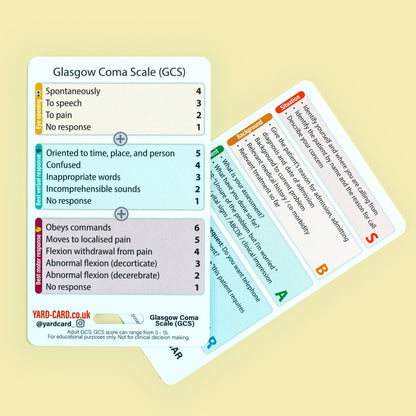 Glasgow Coma Scale (front) is a commonly used scale to assess the conscious level of a patient - perfect for neuro obs!