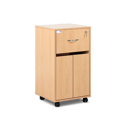 Bedside Cabinet- Beech- Lockable Upper Drawer- Cupboard- Adjustable Shelf