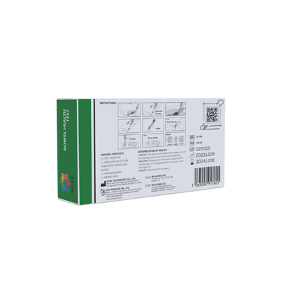 The Bowel Health Test is a qualitative test that detects human haemoglobin in human fecal specimens. The test is a visual one step, in-vitro assay. A self-test designed to help diagnose gastrointestinal bleeding and screening for Bowel cancer.