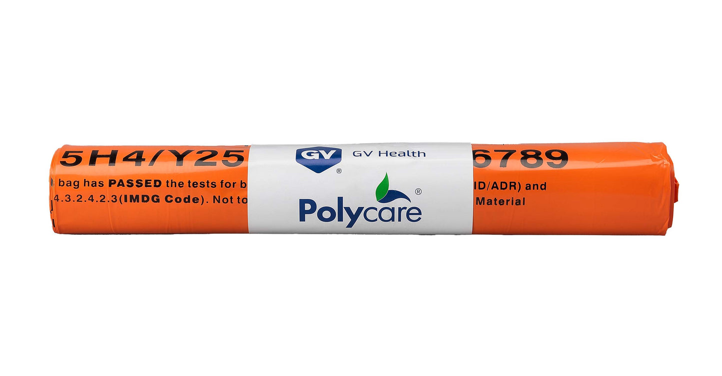 UN approved orange clinical waste bag for disposal of infectious waste that does not contain chemicals or pharmaceutical medicines.