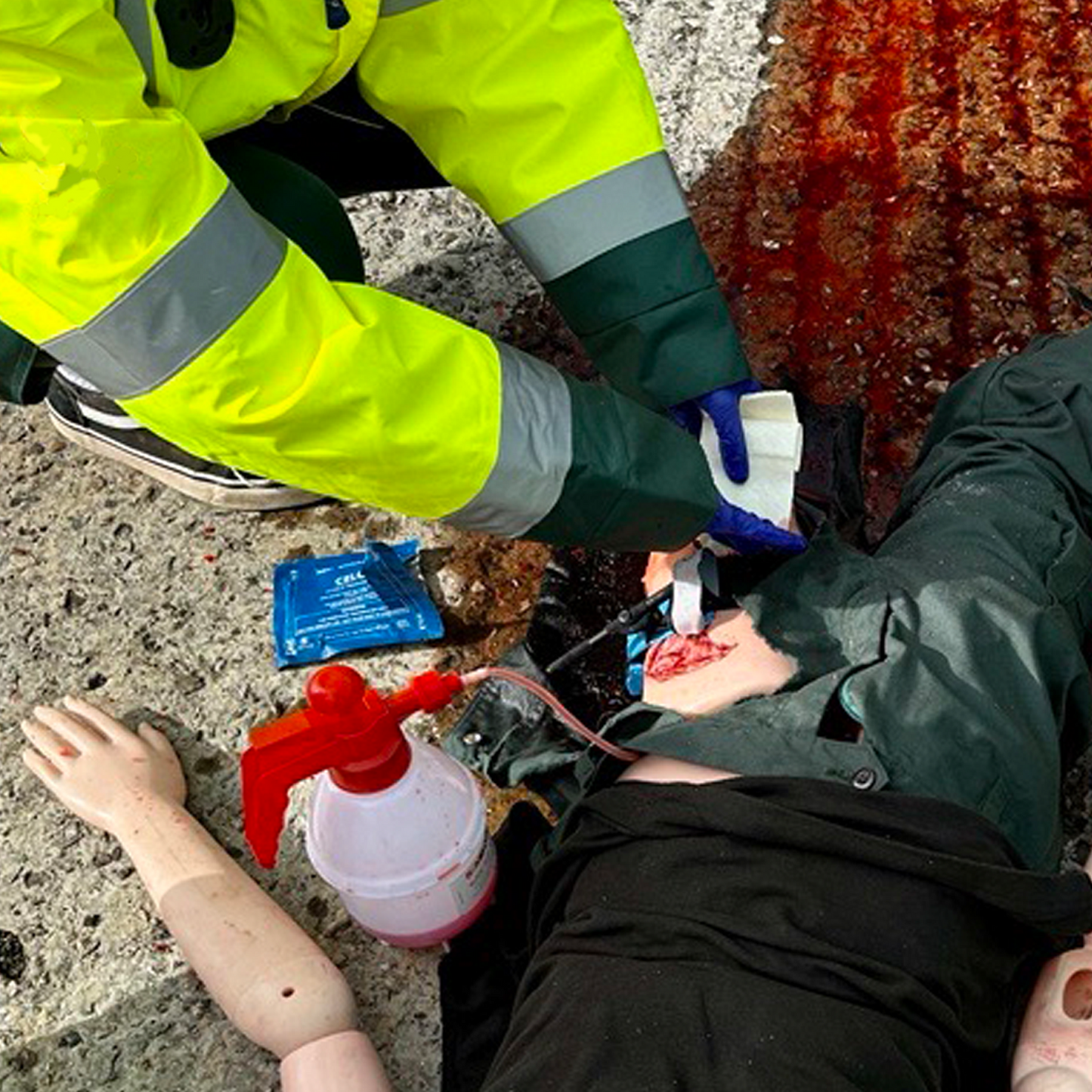 Using life-like models with realistic skin texture and bleeding injuries that are representative of knife and gunshot wounds help to prepare the mind for treating traumatic injuries as well as the perfecting the actions for stopping haemorrhage effectively.