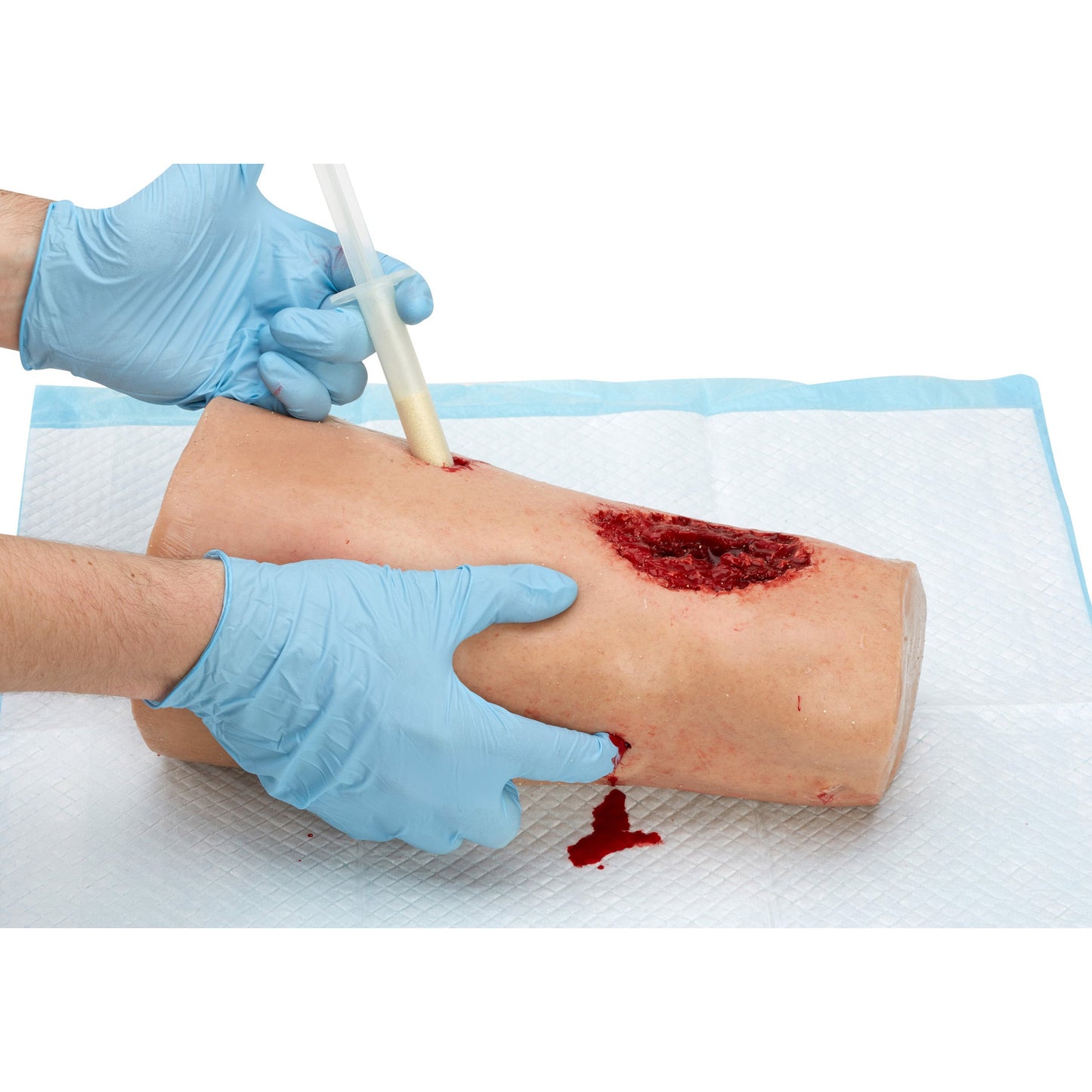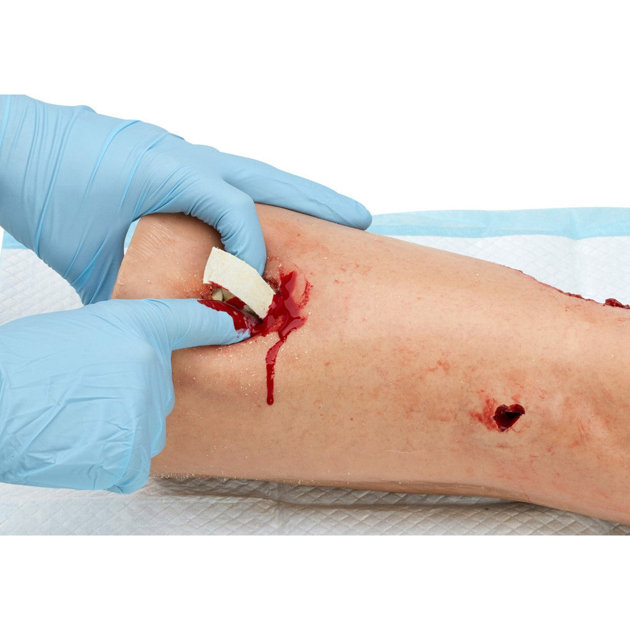 - Open surface wound for Celox Granules and Gauze packing - Blood can be poured into the wound prior to packing to simulate bleeding