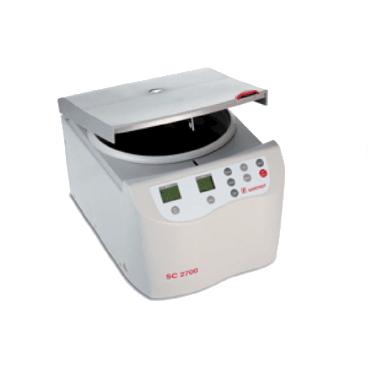Centrifuge, SC 2700, supply voltage: 115/230 V, centrifugation up to max. 2,700 x g, incl. swing-out rotor 6-fold and tube holder 1-fold for tubes up to 100 mm length, for separation of serum/plasma from the blood cells, 2 preset programs and 1 variable program