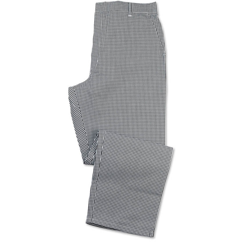 Unisex chef’s gingham trousers with an elasticated back for a comfortable fit. Feature a zip with hook and bar fastening and hip pockets. Available in a choice of colours.
