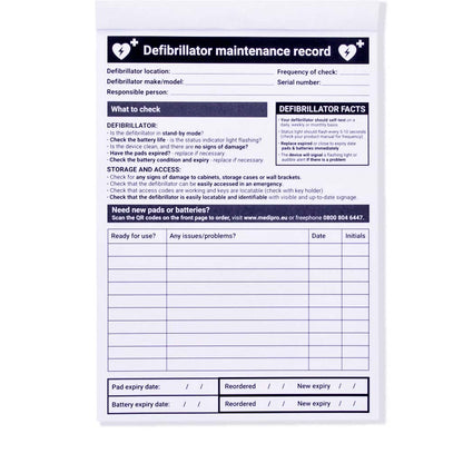 The defibrillator maintenance booklet will enable you to quickly and accurately record essential checks to your defibrillator, whilst having full, traceable maintenance history in one, referenceable booklet.