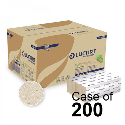 A soft, embossed, narrow 2 ply Z-fold paper hand towel, made from 100% recycled drinks cartons. These narrow towels are undyed and come in a natural Havana colour. Each case is made up of 15 sleeves of 200 towels to give 3000 towels per case. This product is Ecolabel certified and the Lucart product code 864043.