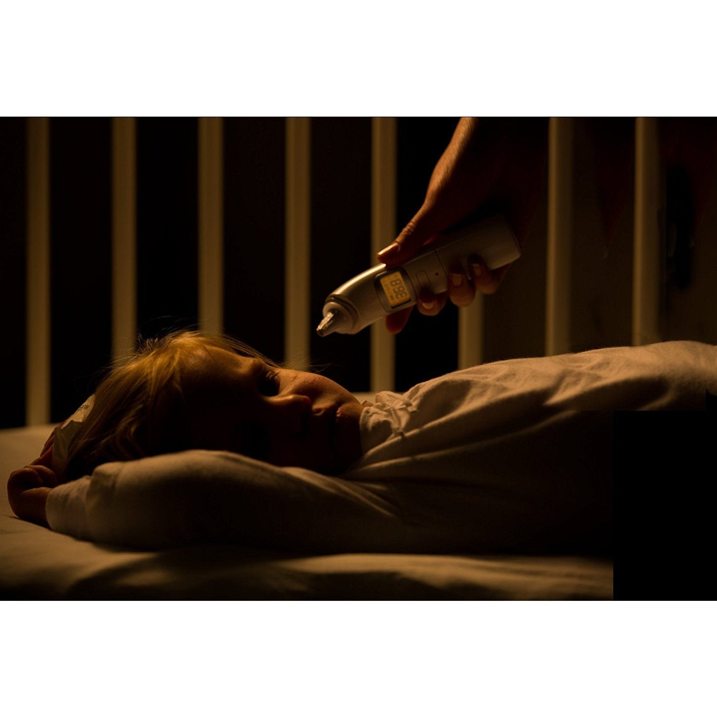 It not only measures ear temperature but can be used to take surface temperatures, from a milk bottle or food dispenser as well as giving readings for the room temperature. Memory capable of recording up to 25 readings.