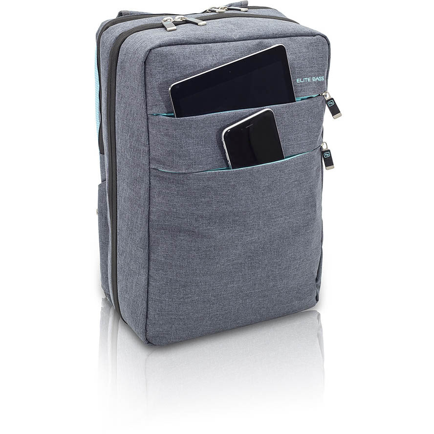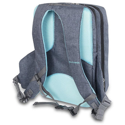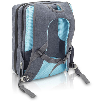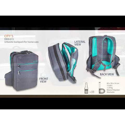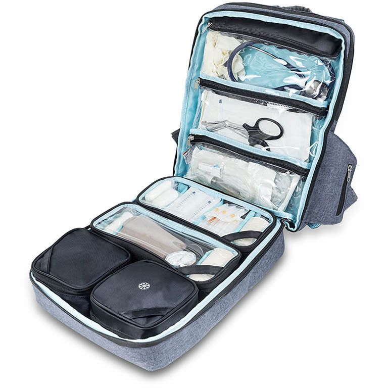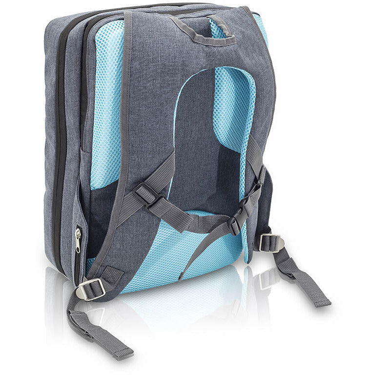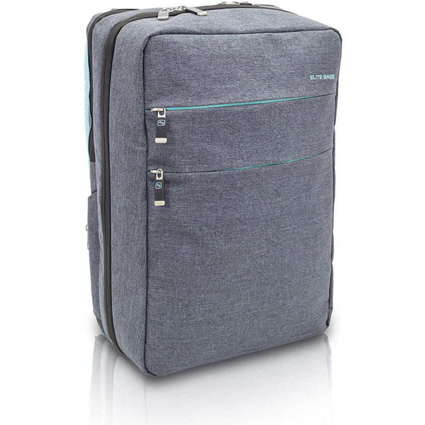 The compact and elegant Elite CITYS is an ergonomically designed, multifunctional backpack, featuring a highly structured interior with clear, PVC fronted pockets and removable pouches, ideal for storing medical materials and clinical instruments for home visits or on-call stay overs. A light yet durable build makes it perfect for short trips and day visits. The outer shell is made using an easy-to-clean, water-resistant bicolor material, ensuring the contents remain clean and protected, even in poor weather conditions. Padded shoulder straps with breathable mesh lining give the pack a cool and comfortable feel. An adjustable sternum strap is excellent for ensuring correct weight distribution over the shoulders, especially when the pack is full. Small zipped side pockets make ideal storage for keys and other personal effects, while large front pockets are perfect for documents and paperwork.