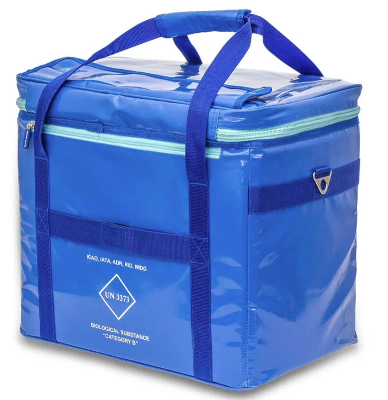 The bag is certified according to UN 3373, that enables the transport of biological substances class B.