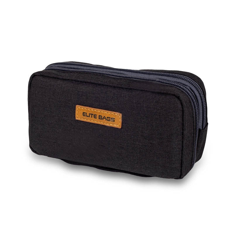 Elegant pouch with different compartments and elastic bands to organize the diabetic’s kit.