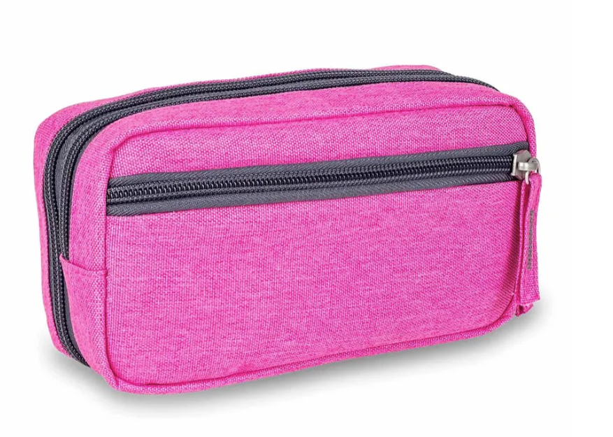 Elegant pouch with different compartments and elastic bands to organize the diabetic’s kit.