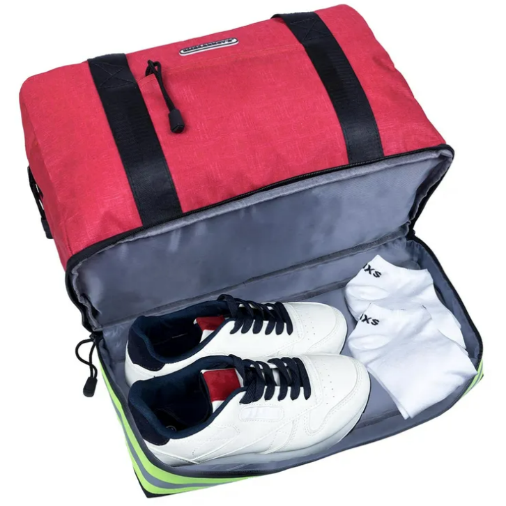 It also has a special lower pocket to store shoes and another smaller one in which you can store your keys, mobile, wallet.