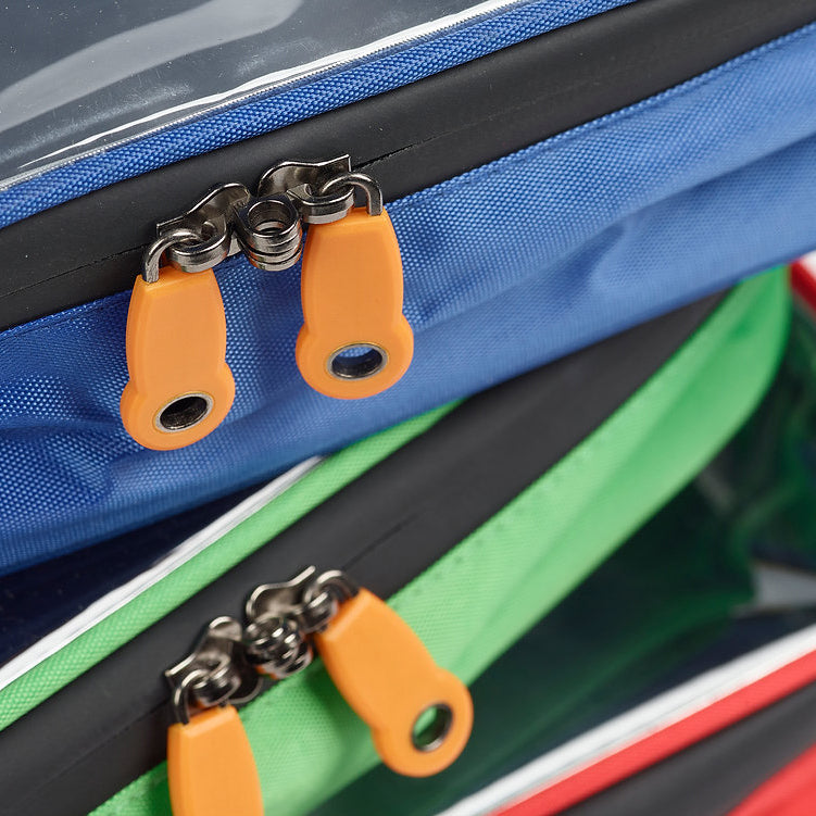 The CorrMed everyday medical pouches have been designed for use either inside medical bags or as backups and to separate and differentiate medicine and equipment items. They are made from a heavy-duty polyester and the design incorporates clear lids to enable quick and easy identification of contents. The design also features waterproof and tamperproof zips for teams to add individual security seals when required. The pouches are extremely lightweight and the material can be wiped clean. The internal material is a medical grade foil and the clear lids include 2 windows for identification and / or QR codes.