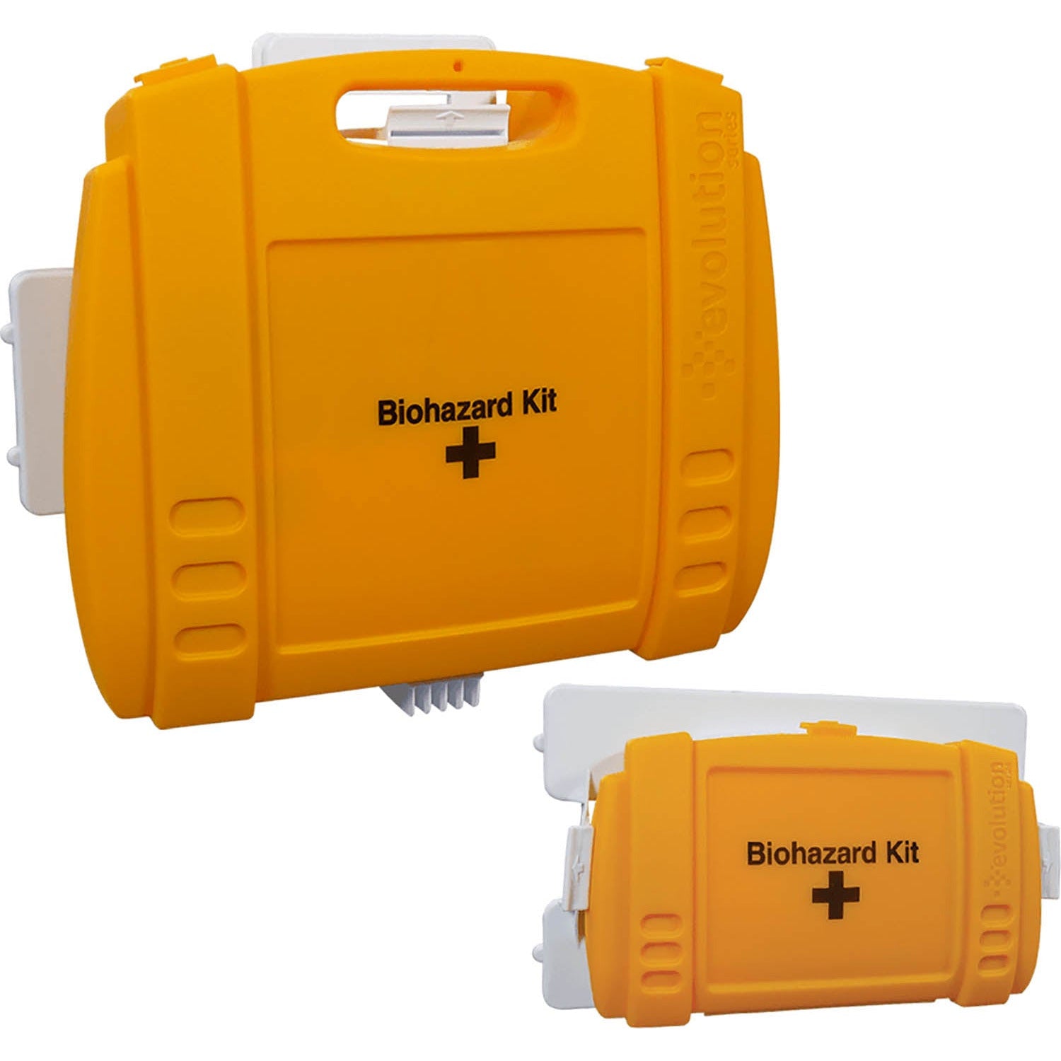 Evolution Plus Body Fluid Disposal Kits are specially designed for the safe removal of body fluids in order to ensure a safe working environment and high level of hygiene. Evolution Plus Body Fluid Disposal Kits help disinfect the soiled area and reduce the risk of contamination. All kits contain disinfectant spray, HypaClean Disposable Clean Up Packs and absorbent granules with deodoriser. Evolution Plus Body Fluid Disposal Kits are available in 1, 2, 6 and 12 applications kit depending on your organisation needs. The kits come in a compact size Evolution case for easy storage and optimum portability. The kits also come with wall fixing bracket for better storage and easier identification of the kit. The kit identification label included with the kits helps recognise when the kit is missing or when it has been removed from its place. In addition, inside the case there are shelves to organise the content for immediate response in case of an emergency. Once on the bracket, the kit creates a self supporting workbench allowing the kit to be worked on. Refills are available to purchase separate.