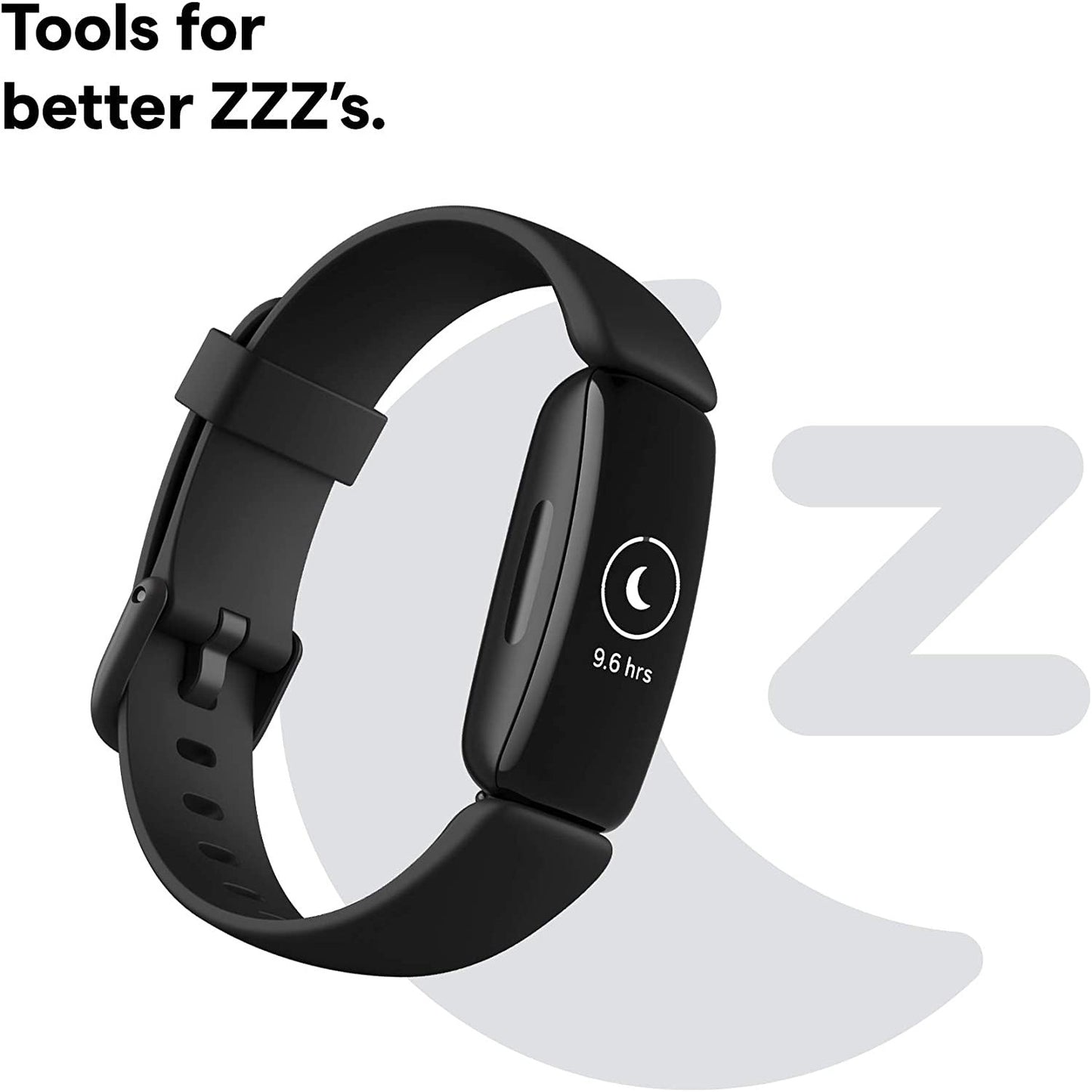 • Sleep Stages & Score: Inspire 2 tracks your time in light, deep and REM sleep stages and gives you a nightly Sleep Score in the Fitbit app, so you can better understand your sleep quality and work toward better rest.