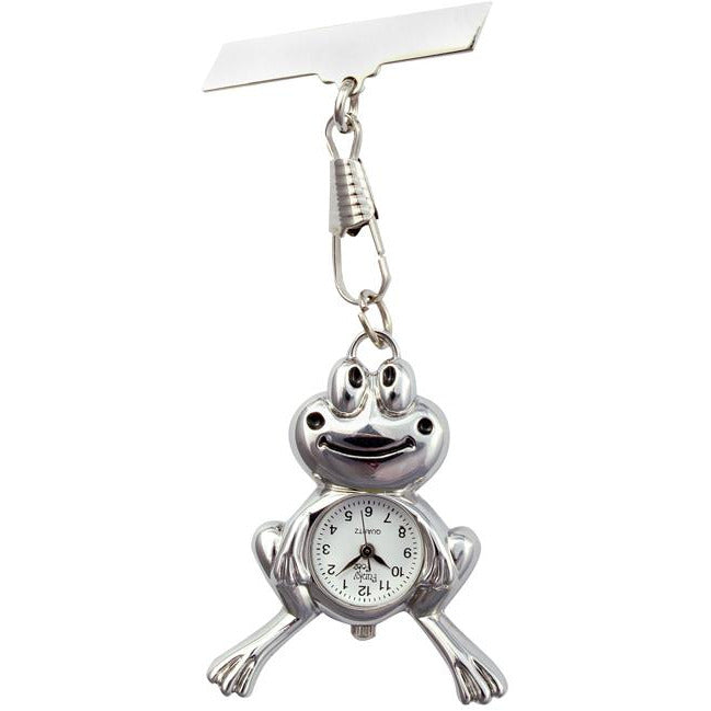 - Frog fob watch with shiny silver finish. He's got a cheeky happy face and looks great.
