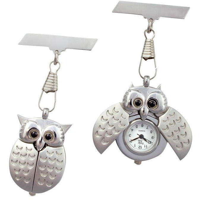 - Owl Fob Watch, probably wise, with matt and shiny silver finish. Wings flip open to reveal his secret dial.