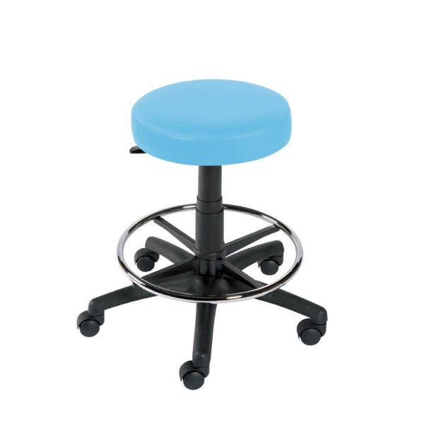 Gas-Lift Stool with Back Rest, Foot Ring & Castors, Vinyl-Anti Bacterial