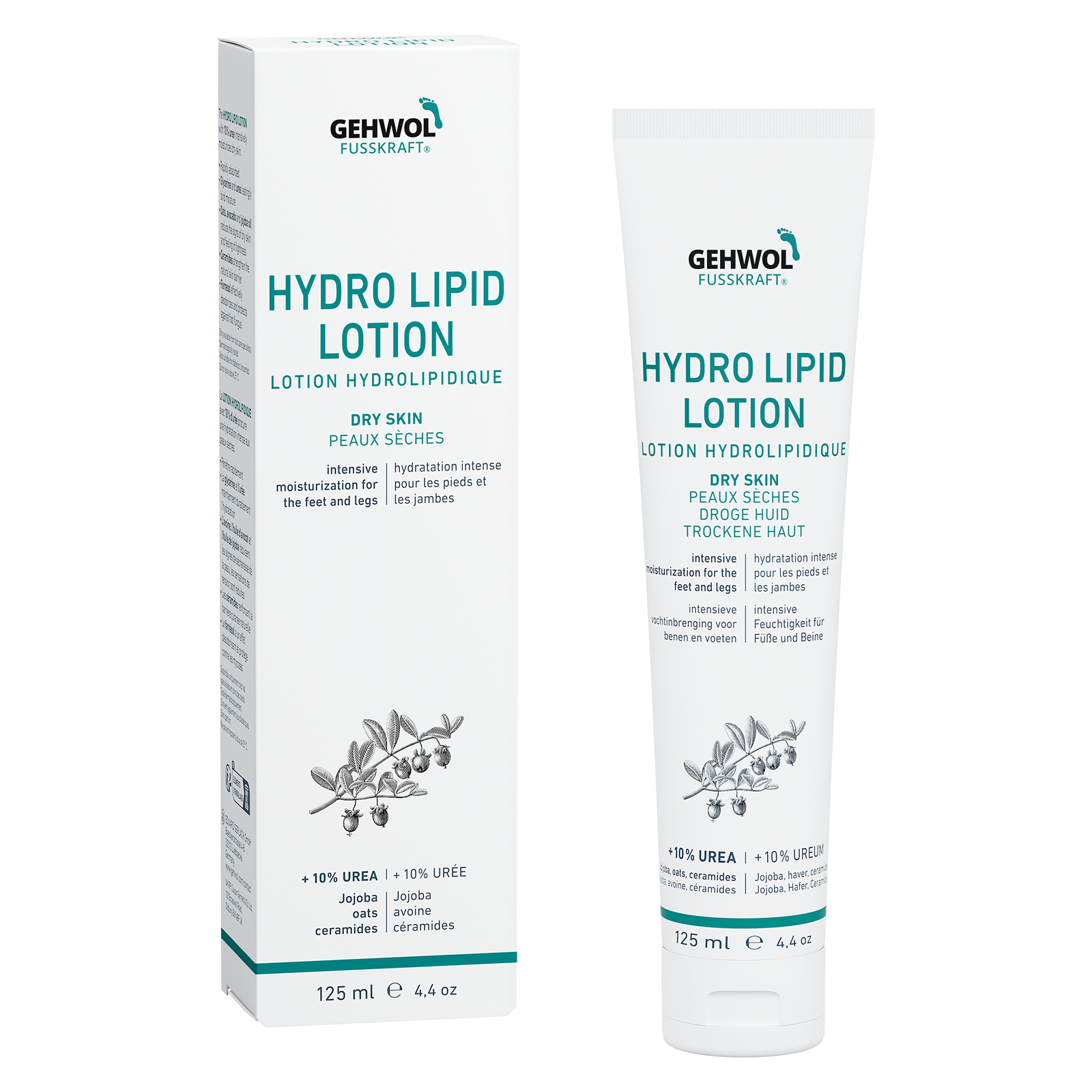 Gehwol Fusskraft Hydolipid Lotion is an easily spreadable lotion for the daily care of dry skin on the foot and leg. It is rapidly absorbed and compensates for the lack of lipids and moisture. The natural protective function of the skin is brought into balance. The ingredients urea and Glycerin bind moisture in the deeper layers of the skin, the callus is smooth and excessive formation is reduced. Avocado and jojoba oil to lead of the dry skin the missing lipids again. Ceramide as important components of the skin's own skin protection function strengthen the barrier layer and protect the skin from drying out. Excessive scaling of the skin is reduced.