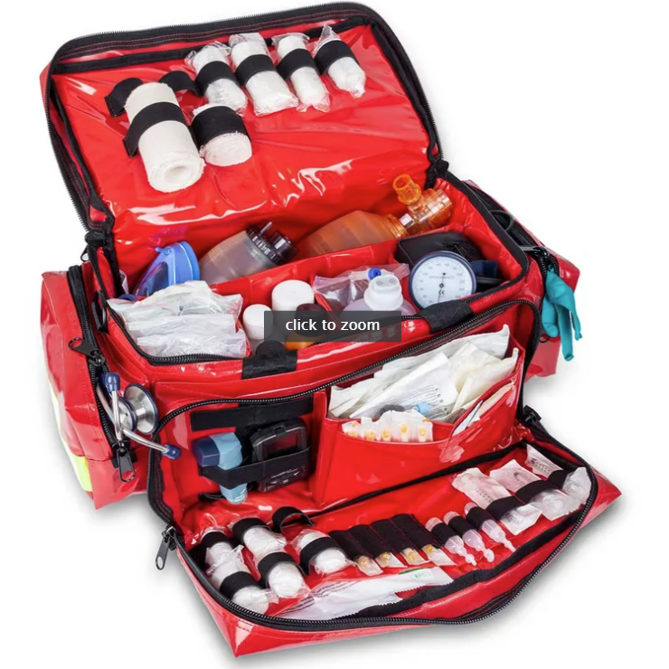 - External upper transparent pocket to house a list of medical supplies.