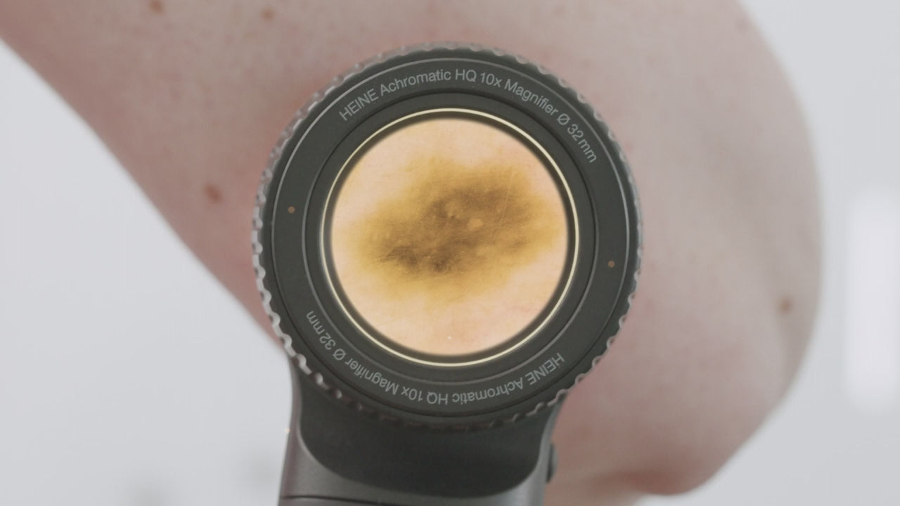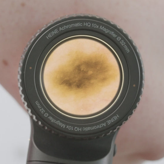 HEINE diSTANCE working ring: The stable working ring enables the user to examine and manage a lesion under magnification by maintaining a constant distance between the skin and the dermatoscope without contact. (optional)