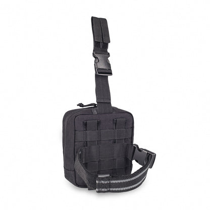 Wearable first aid kit, attachable to the leg, belt or can be anchored to a vest or pack using MOLLE universal anchorage. Constructed from the highly resistant 500D nylon 6 IRR, and treated with a water repellent formula. Features a large front pocket for PPE such as gloves and masks, under which is a velcro panel for attaching identification badges. The interior is fitted with elasticated loops, two auxiliary rings and a mesh pocket with velcro closure flap.