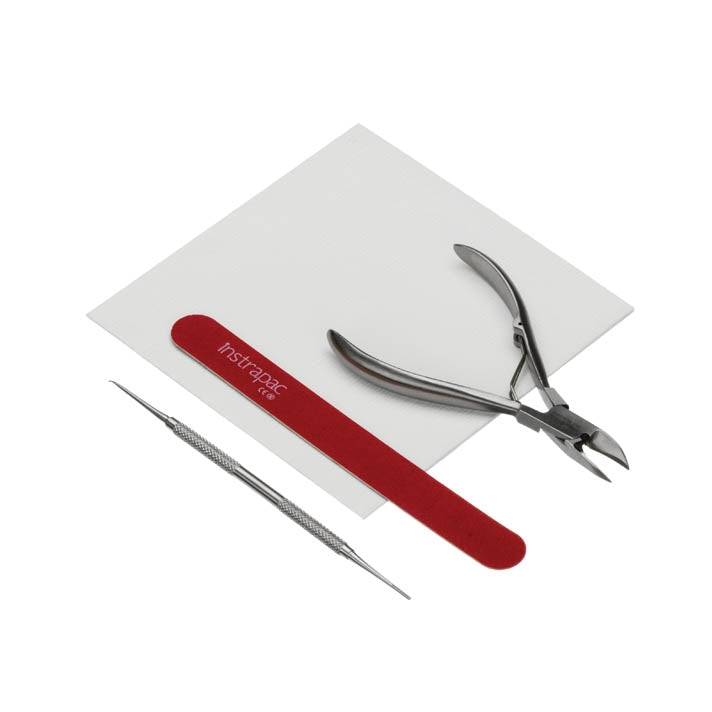 Single Use Podiatry Assistants Instruments Pack containing a high performance 13cm nail cutter, with curved head and smooth action roller spring mechanism to help reduce user fatigue. Manufactured from medical grade surgical stainless steel. Supplied in an easy to open, sterile pack. Contents are wrapped in a sterile field.
