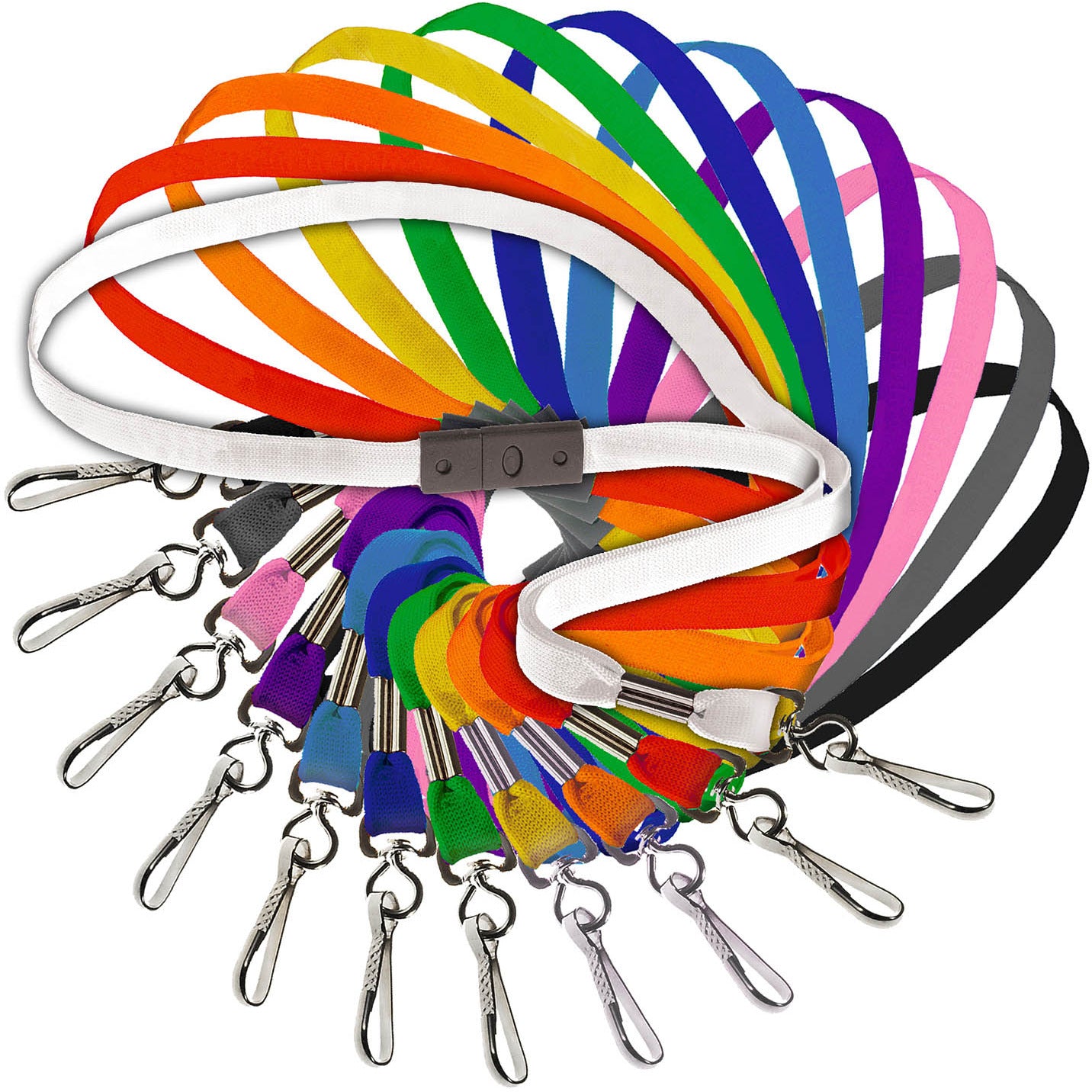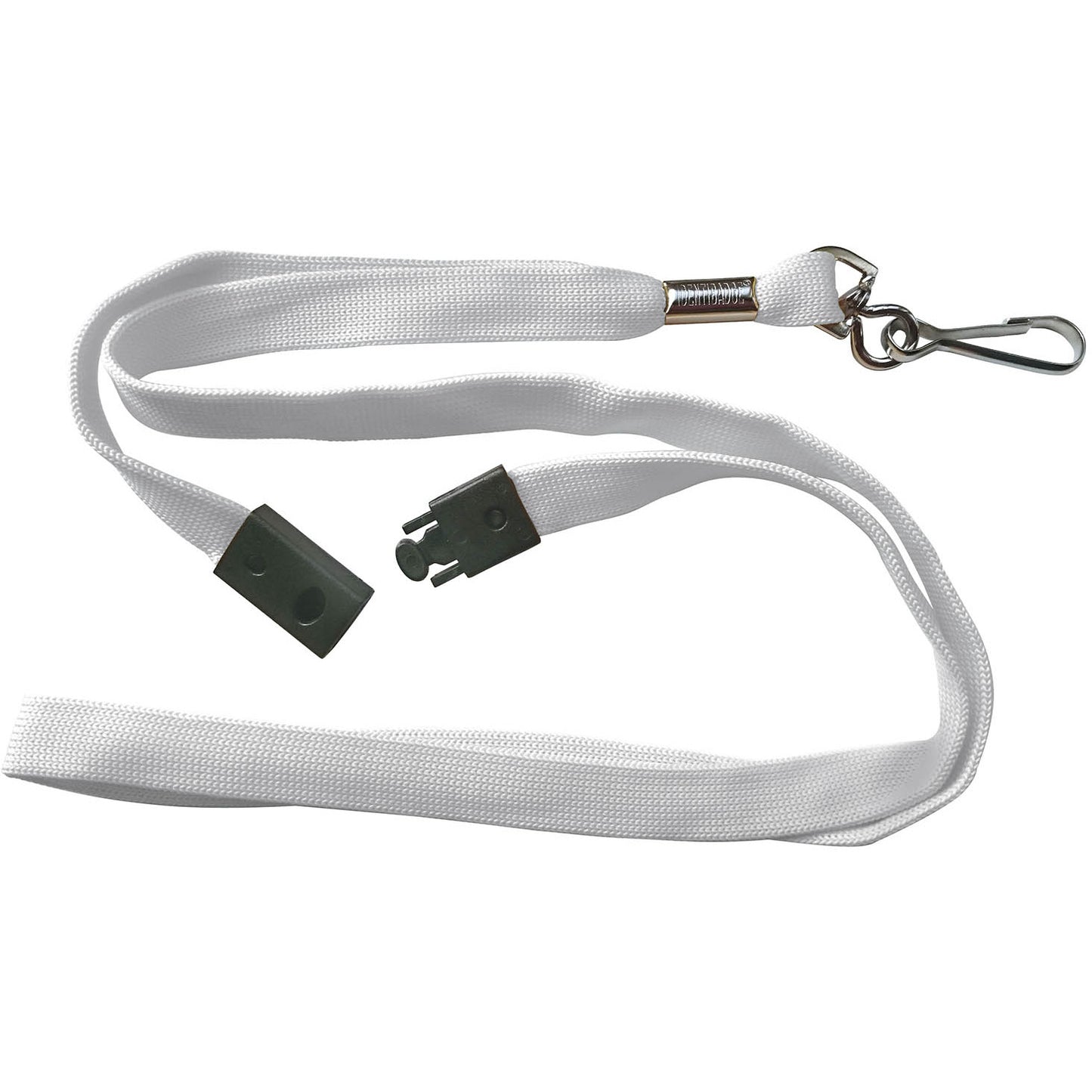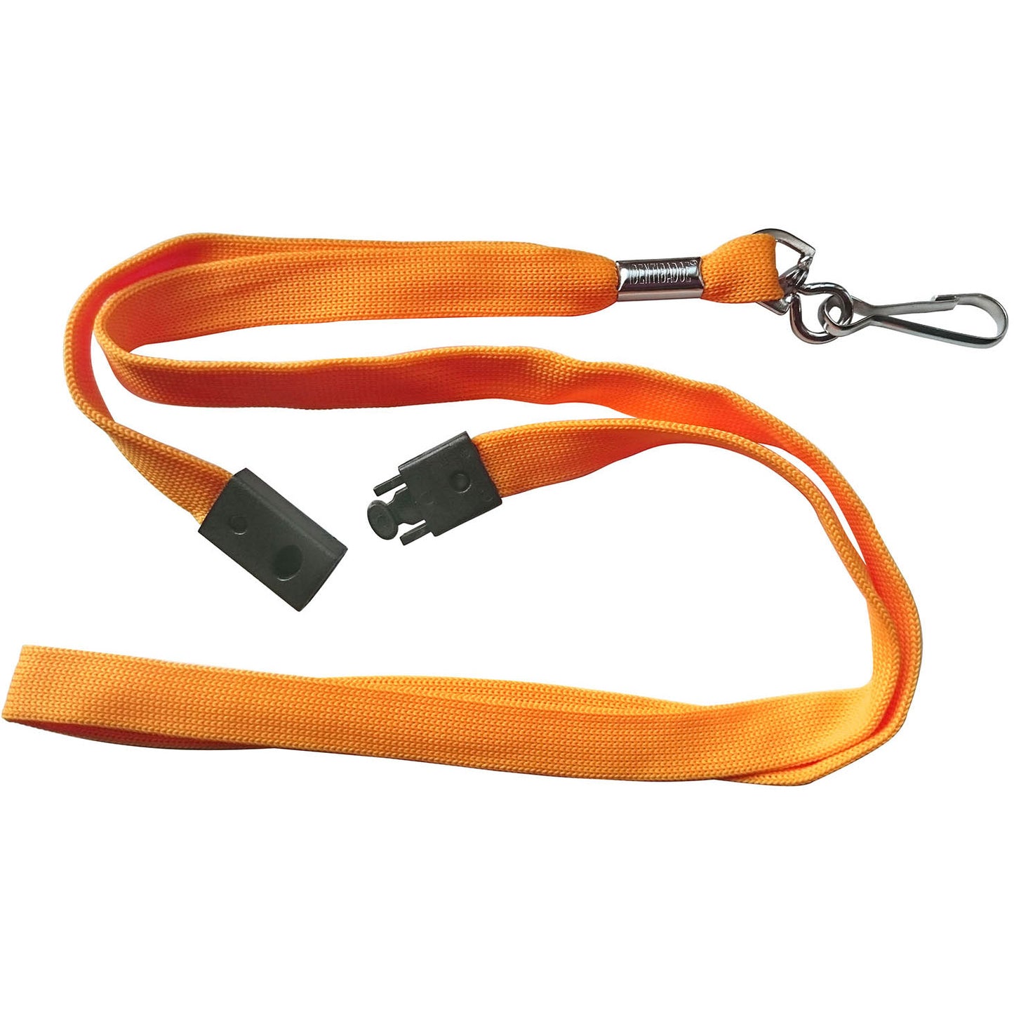 Flat fabric lanyards are 10mm wide with a hanging length of 500mm approximately (1 metre of woven fabric in length).