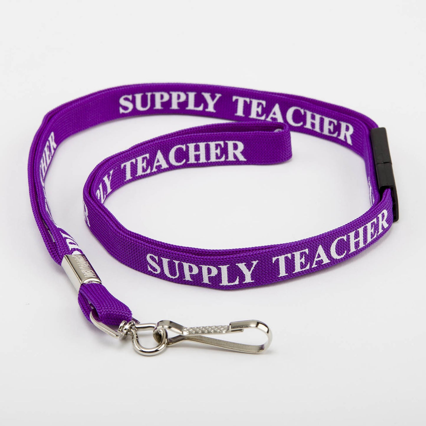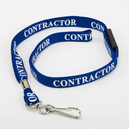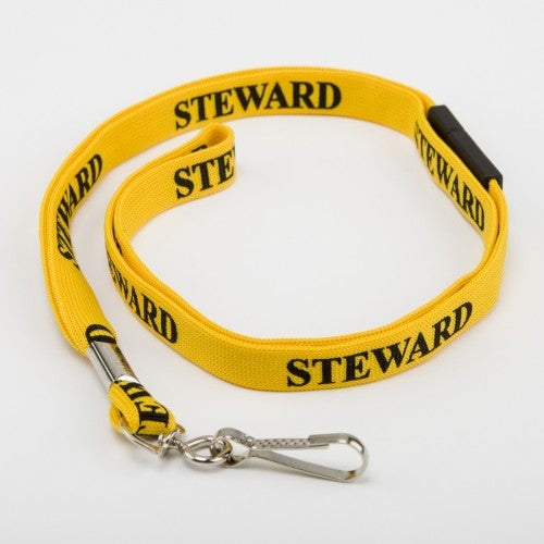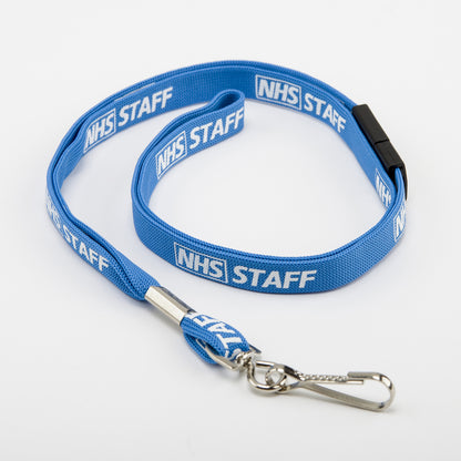 Pre-printed flat fabric lanyards are 10mm wide with a hanging length of 500mm approximately (1 metre of woven fabric in length).