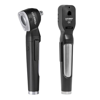 - two-component handle (aluminium / fibre-glass reinforced), also combinable with LuxaScope LED otoscope- and dermatoscope head